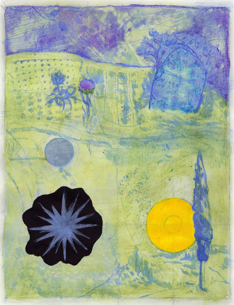 La fine delle certezze (dalla serie Le tre porcellane rotte ) | 2019 | 24 x 18 cm | Colori d’olio su telaIl decesso di Calimera (Ca’Rezzonico) | 2019 | 40 x 40 cm | Acrilico su telaPensieri tagliati, viste perse (Plantasia) | 2019 | 55 x 45 cm | Acrilico e pastello su telaWalking rocks, flying earth (Rocky Eminences), 2019 | 155 x 180 cm | Acrilico su telaRocky Eminences, | 2019 | 30,5 x 23,5 cm |Acrilico su cartaMappa di un prato | 2019 | 25 x 19 cm | Acrilico su carta