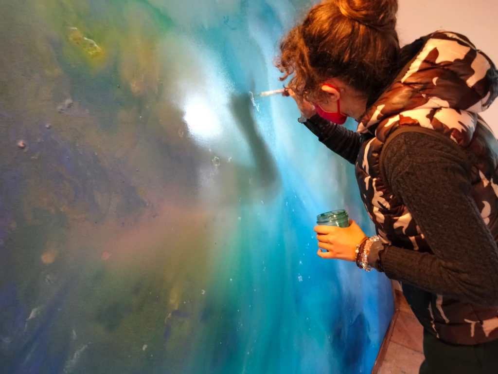 Per far confluire i diversi elementi in un tutt’uno, è bastato anche solo un puntino, una linea o un colore versato da parte di ognuno per riconnettersi al resto della “cosmo-tela”, un cosmo in movimento in cui coesistono i sogni di ciascuno.